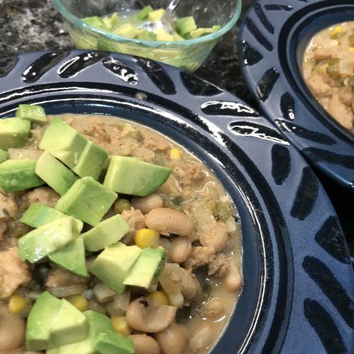 - Divide chili into bowls. Spoon some diced avocado on top, if using. Serve.